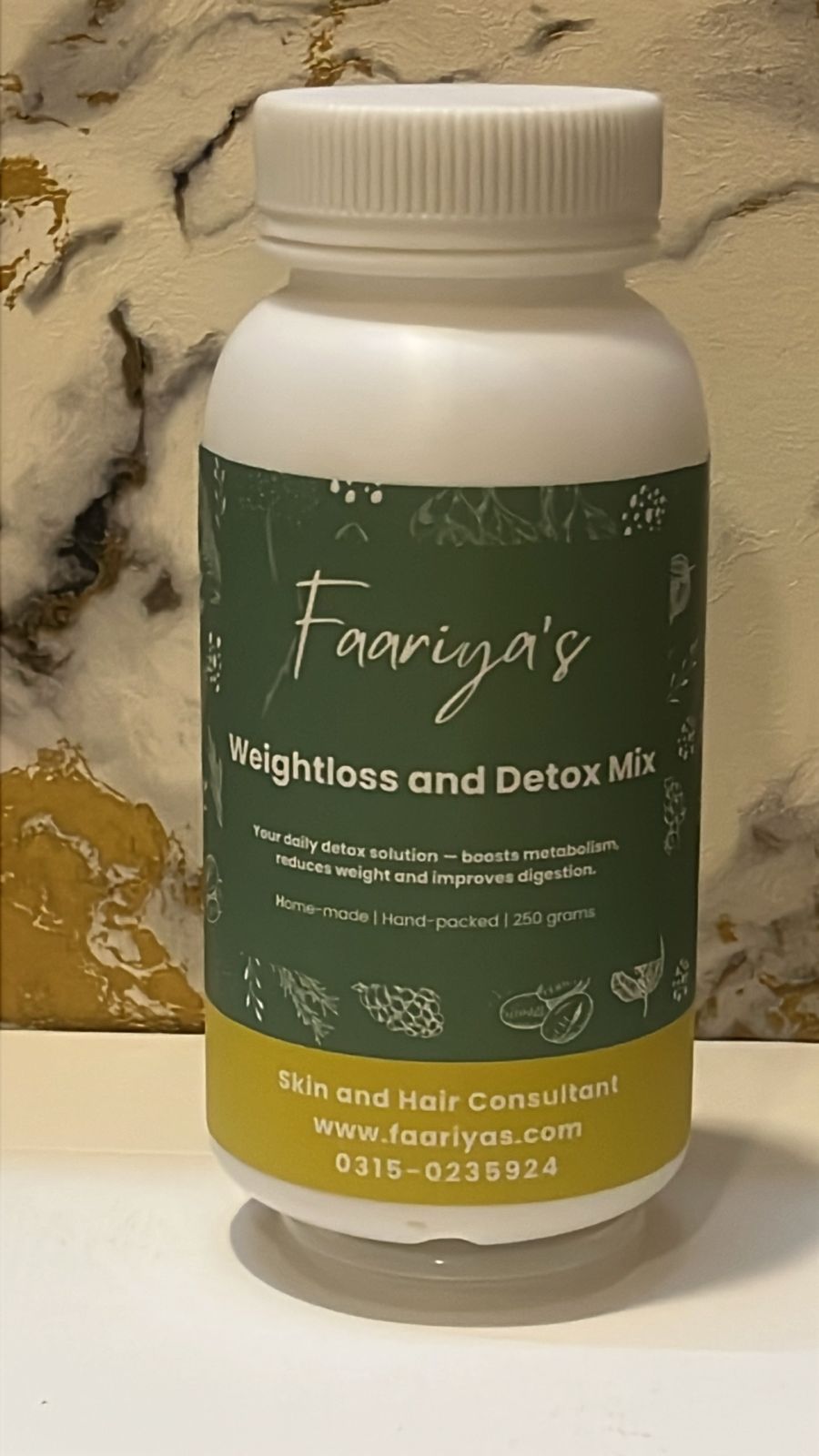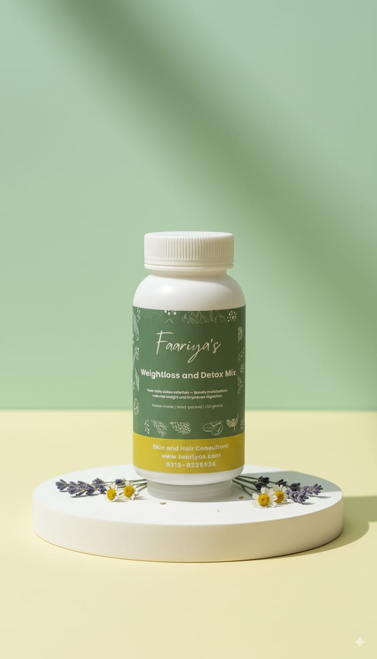 Faariya’s Weight Loss & Detox Powder  is  a natural herbal blend to burn fat, boost metabolism, reduce bloating, and detoxify your body. Handmade and hand-packed for safe, effective, and visible results.